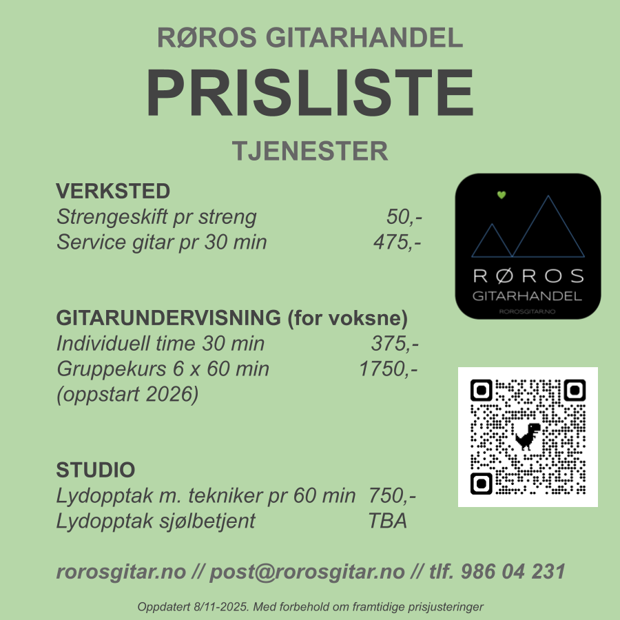 - Klikk på bildet under for å se hvilke gitarer og andre produkter vi har på lager!